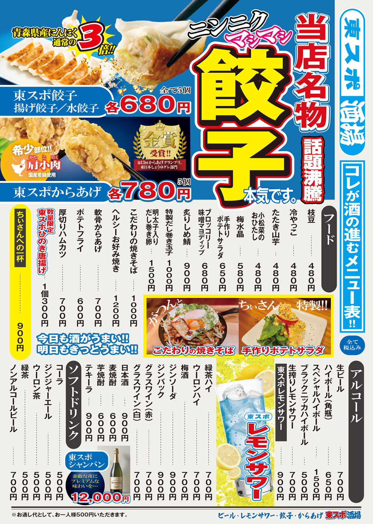 弊社の共同事業プロジェクトの一環で商品開発しました、東スポ商品第1弾「東スポ餃子」と第2弾「東スポからあげ」が店舗で味わえる場として、東京スポーツ新聞社とのJVにより『東スポ酒場』をニュー新橋ビル地下1階にオープンする運びとなりました。